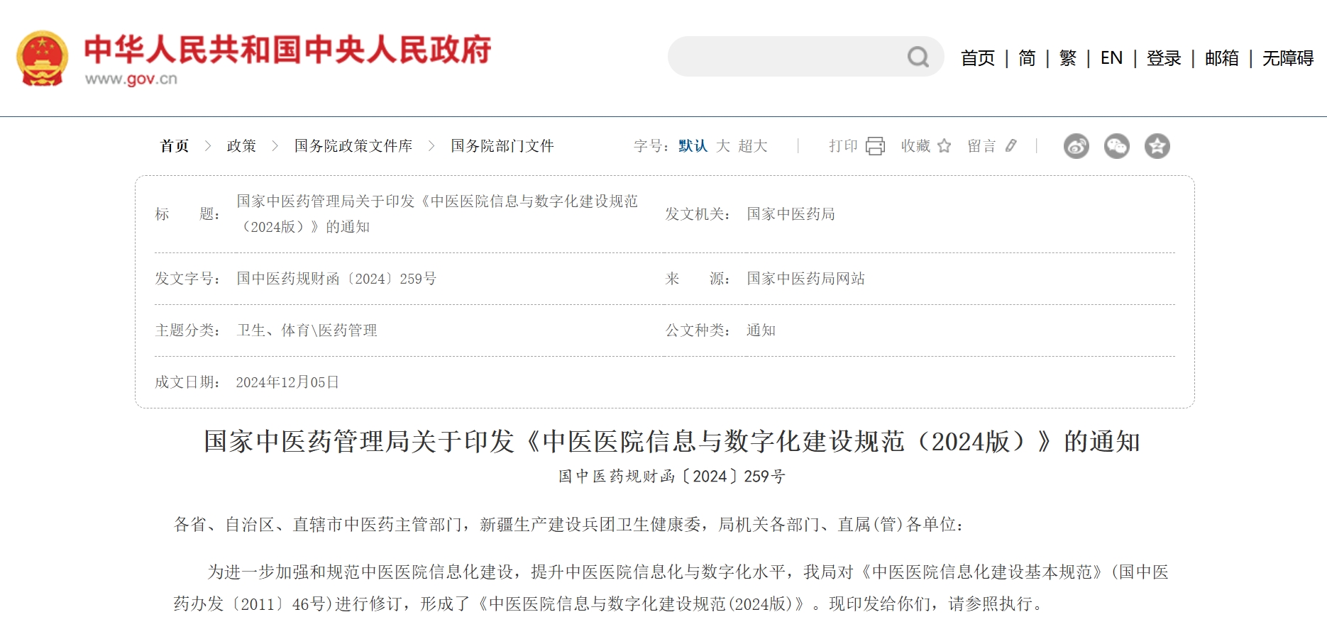 在科技飛速發(fā)展的當(dāng)下,數(shù)字化浪潮席卷各個(gè)領(lǐng)域,醫(yī)療行業(yè)也不例外。中醫(yī)藥作為我國(guó)傳統(tǒng)醫(yī)學(xué)的瑰寶,正迎來(lái)信息與數(shù)字化轉(zhuǎn)型的關(guān)鍵時(shí)期。國(guó)家中醫(yī)藥管理局印發(fā)的《中醫(yī)醫(yī)院信息與數(shù)字化建設(shè)規(guī)范(2024 版)》,為中醫(yī)醫(yī)院的現(xiàn)代化發(fā)展注入了新動(dòng)力,指明了前行方向。