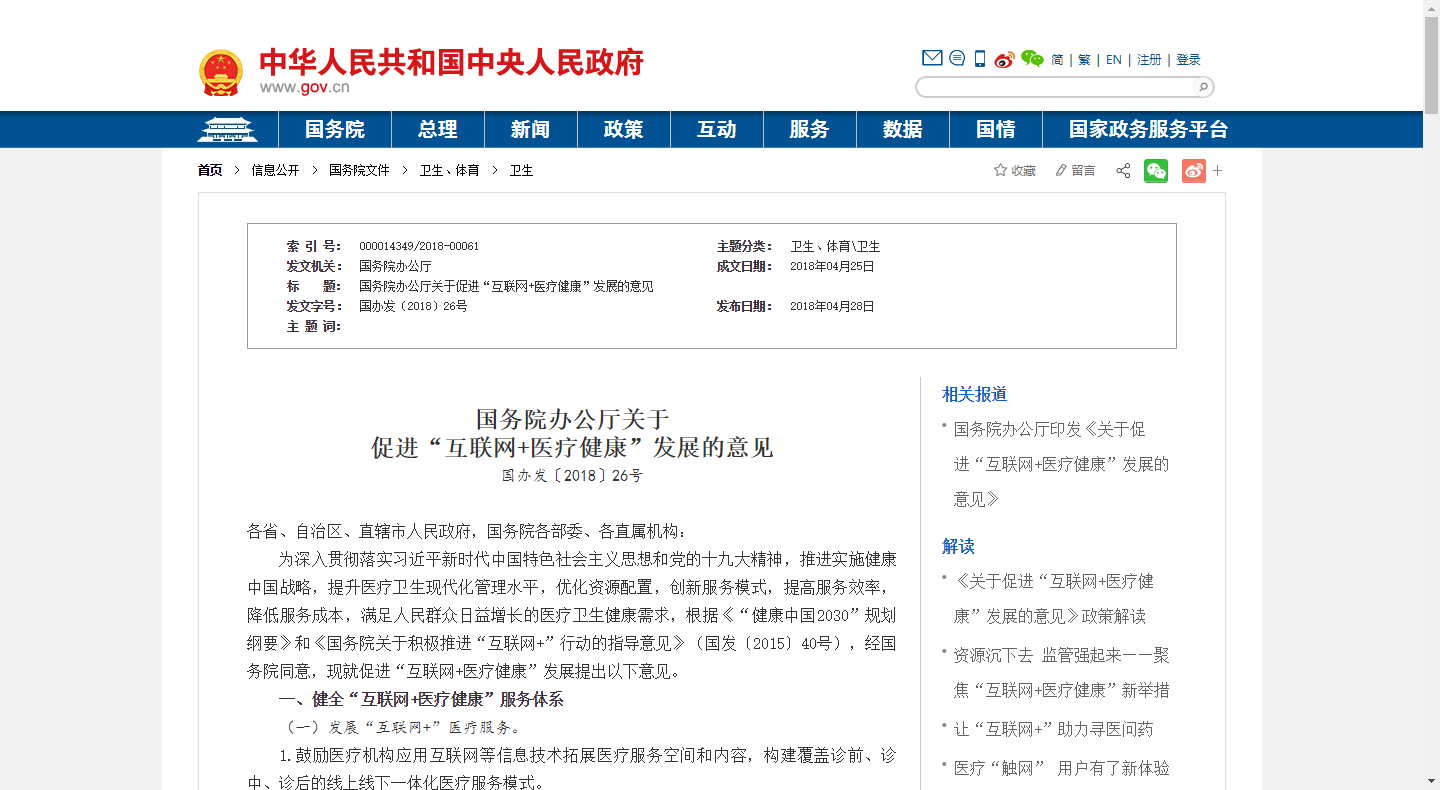根據《“健康中國2030”規劃綱要》和《國務院關于積極推進“互聯網+”行動的指導意見》,現就促進“互聯網+醫療健康”發展提出以下意見。