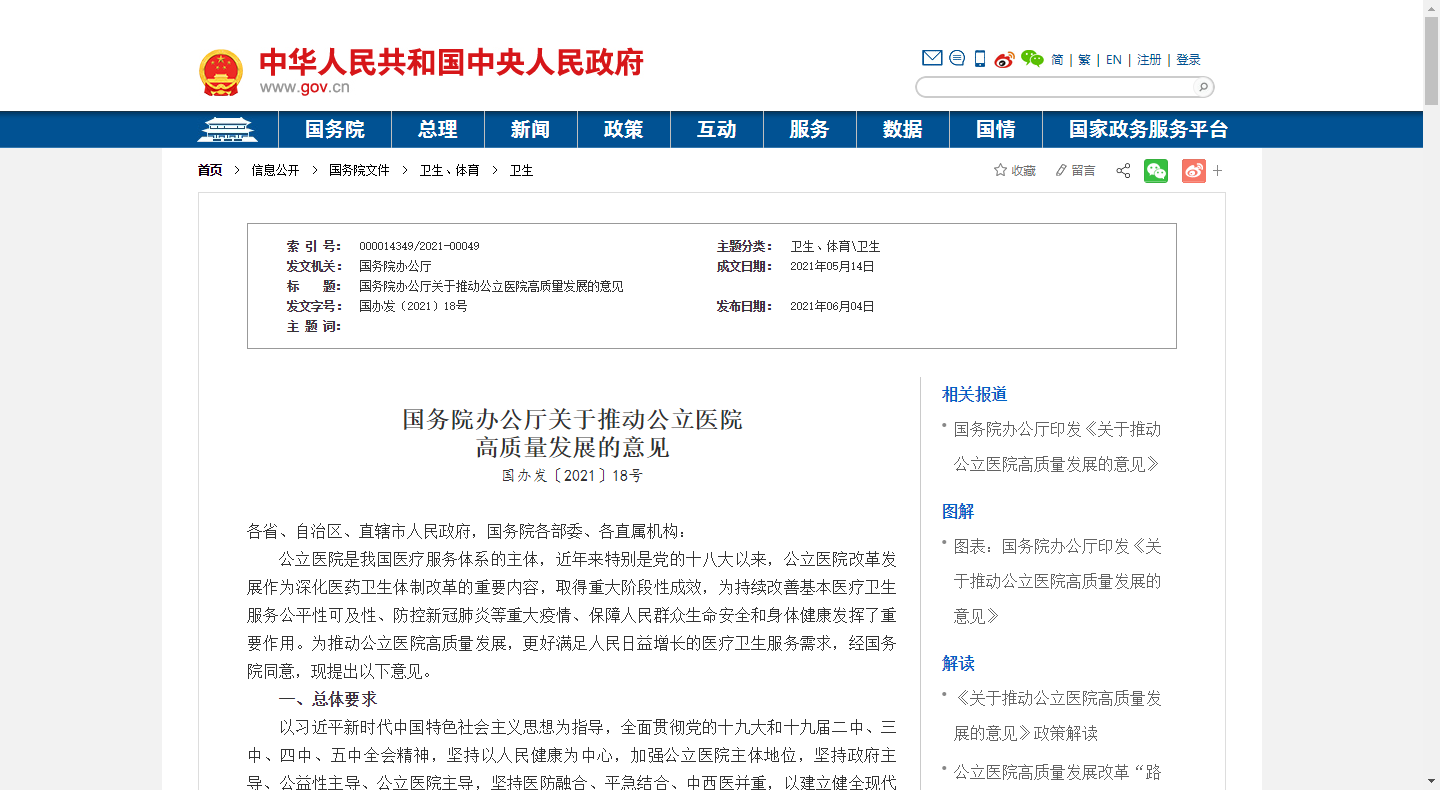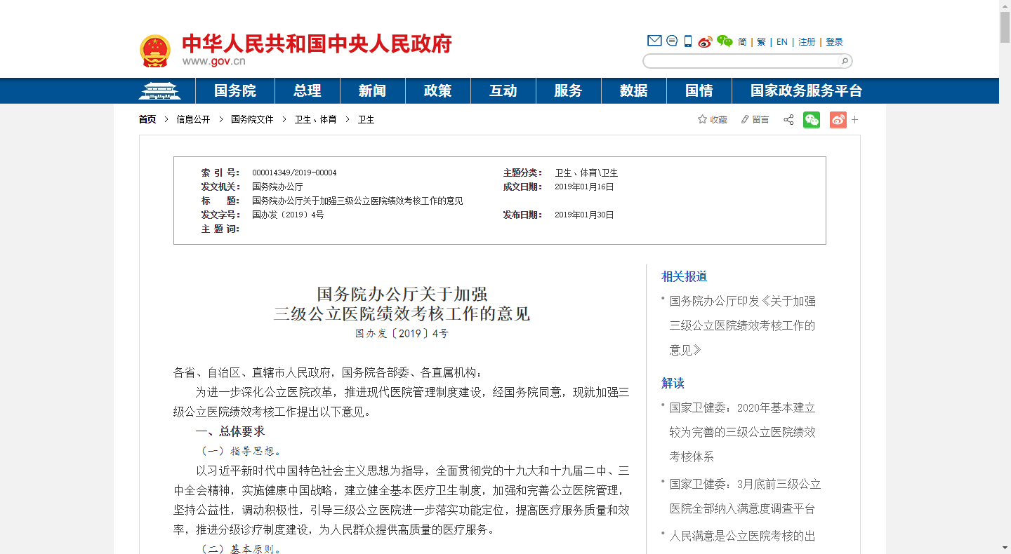為進一步深化公立醫院改革,推進現代醫院管理制度建設,經國務院同意,現就加強三級公立醫院績效考核工作提出以下意見。