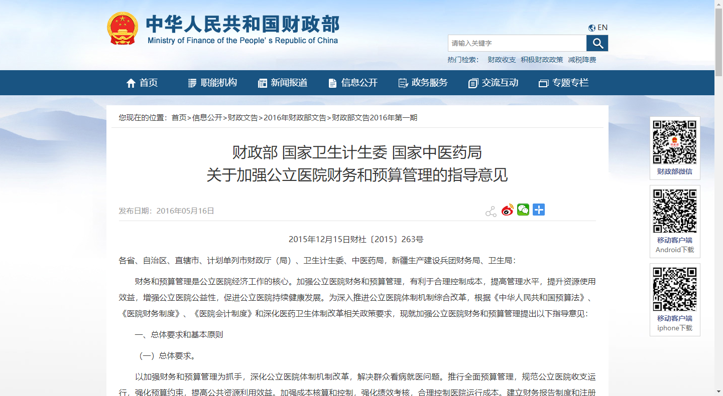 財務和預算管理是公立醫院經濟工作的核心。加強公立醫院財務和預算管理,有利于合理控制成本,提高管理水平,提升資源使用效益,增強公立醫院公益性,促進公立醫院持續健康發展。
