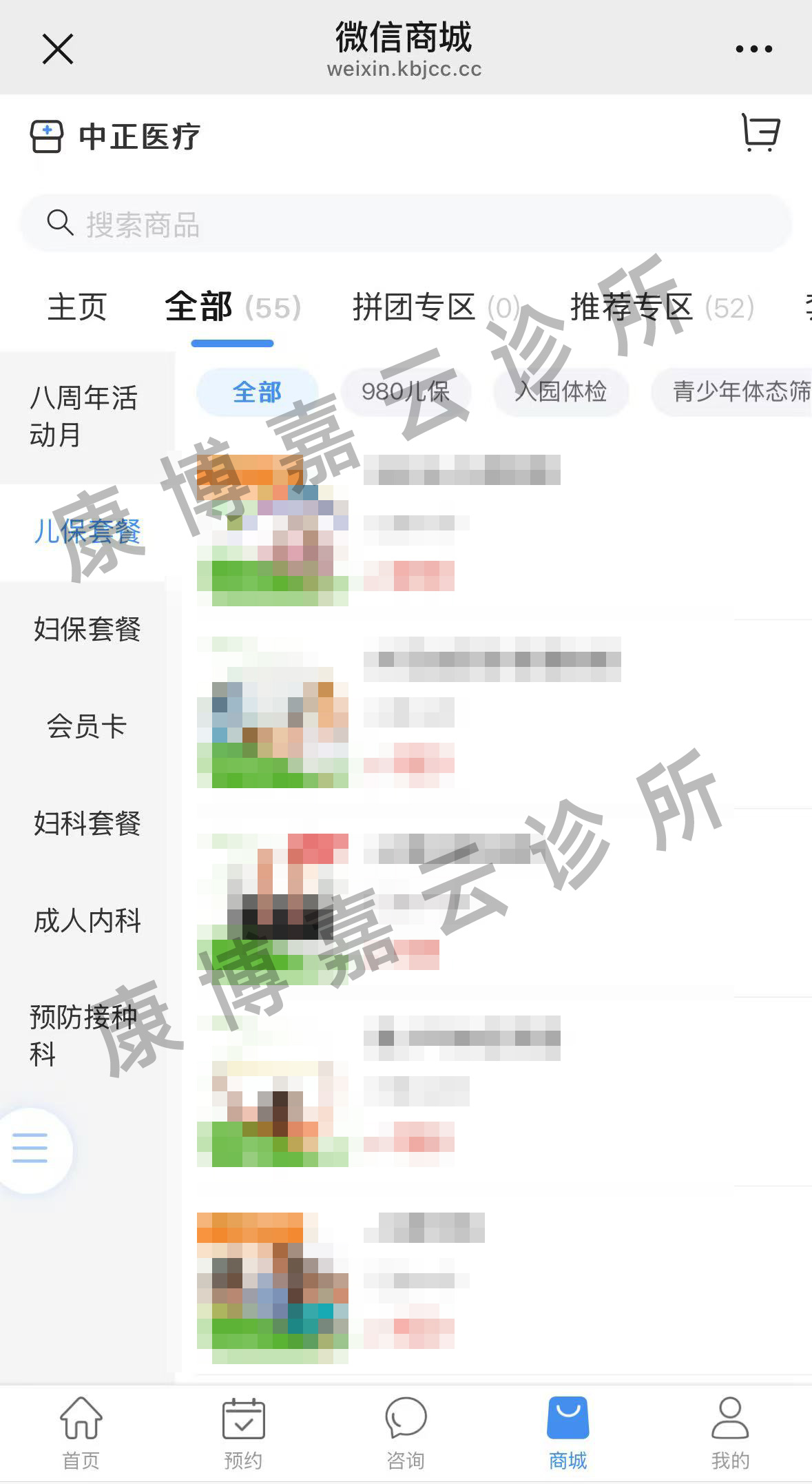 同時,康博嘉云診所還助力中正搭建起微信商城,讓其可以將醫療產品、套餐、醫療服務打包成商品進行線上銷售,既方便了客戶,又拓寬了收益渠道。