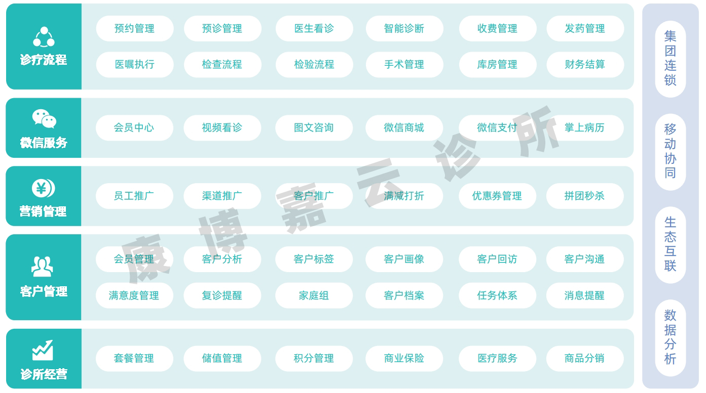 在服務(wù)質(zhì)量提升上,云診所客戶管理模塊能詳細(xì)記錄患者的基本信息、病歷資料、就診歷史等,醫(yī)生在接診時(shí)可快速查閱,全面了解患者情況,從而提供更精準(zhǔn)、個(gè)性化的醫(yī)療服務(wù)。并且,借助微信服務(wù)版塊,診所可與患者建立便捷的溝通渠道,實(shí)現(xiàn)預(yù)約掛號(hào)、報(bào)告查詢、健康宣教等功能的線上化,方便患者就醫(yī),提升患者就醫(yī)體驗(yàn)。此外,我們的統(tǒng)計(jì)分析功能可對醫(yī)療數(shù)據(jù)進(jìn)行深度挖掘,為診所總結(jié)醫(yī)療服務(wù)經(jīng)驗(yàn)、改進(jìn)服務(wù)流程、提升醫(yī)療質(zhì)量提供有力依據(jù) 。