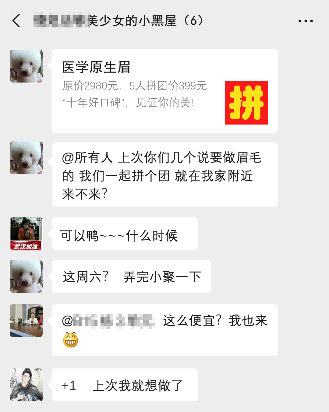 第二步,渠道傳播。開啟拼團后,借助微信群、朋友圈等渠道發動傳播推廣。