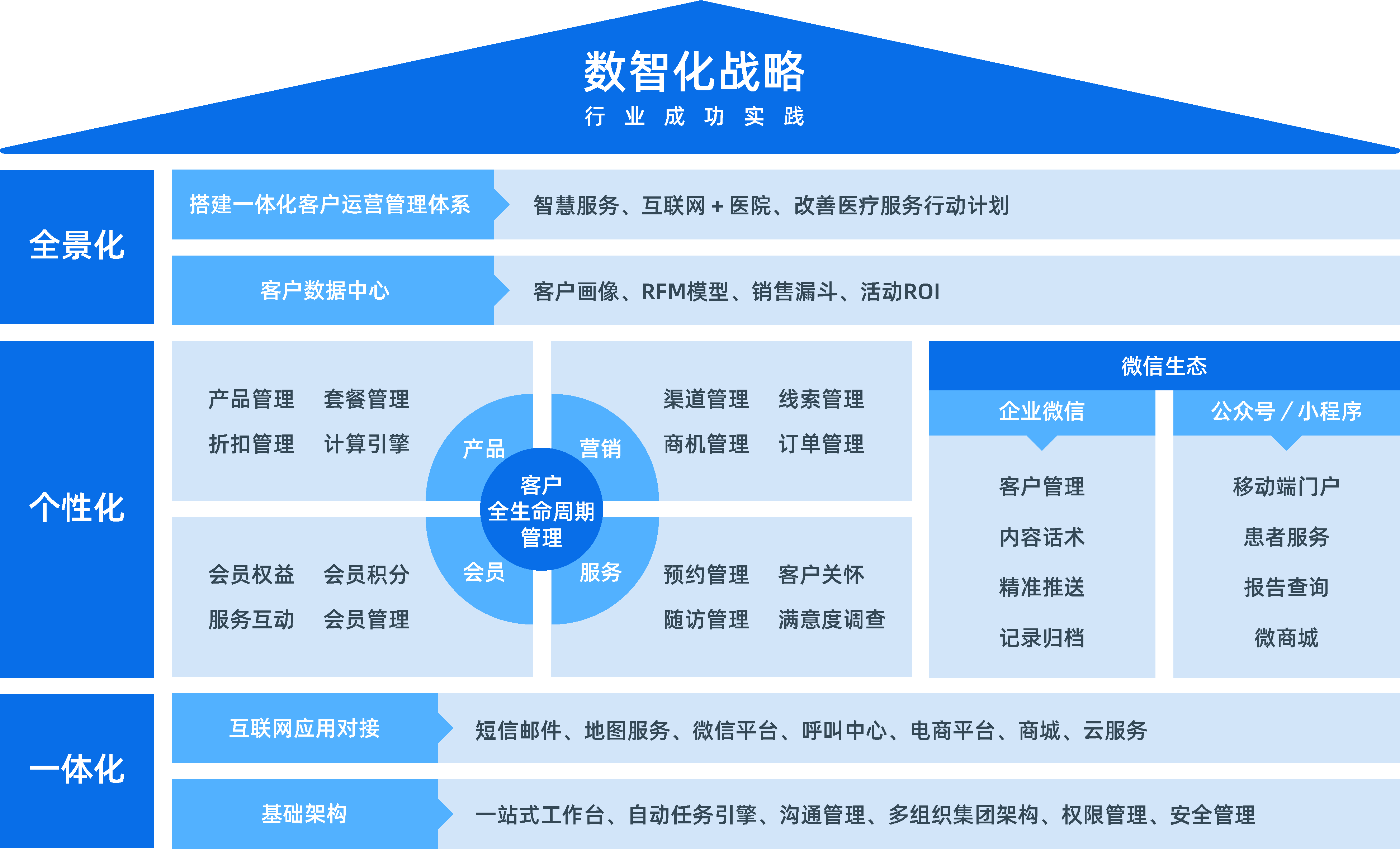 互聯(lián)網(wǎng)平臺(tái)的多樣化發(fā)展,催生了醫(yī)療機(jī)構(gòu)“主動(dòng)式”服務(wù)模式,驅(qū)動(dòng)HCRM向客戶全生命周期精細(xì)化運(yùn)營(yíng)方向升級(jí)換代,在不同階段適時(shí)為客戶推薦合適的產(chǎn)品服務(wù),延長(zhǎng)客戶服務(wù)鏈條。